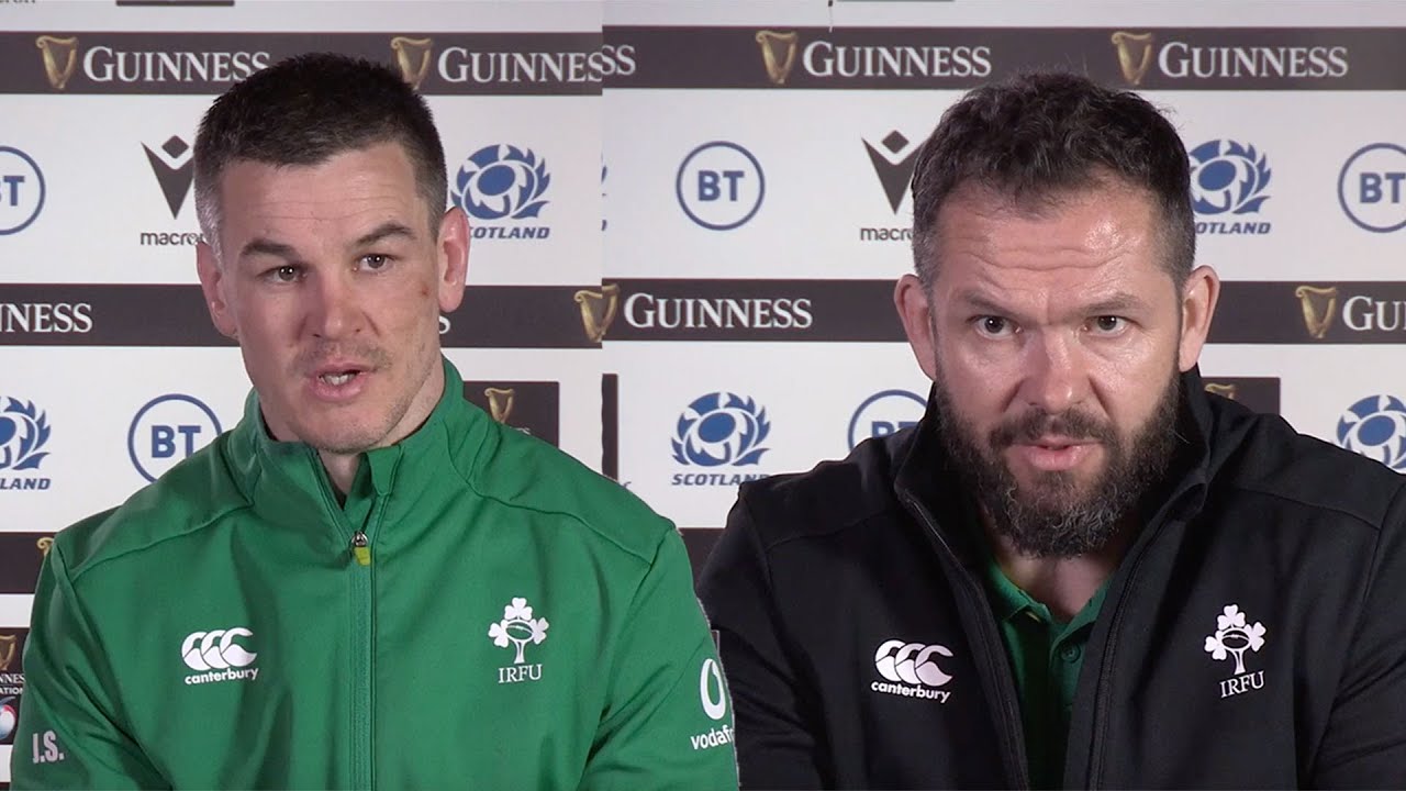 Ireland rugby captain Jonathan Sexton and Andy Farrell speak to the media after Ireland's win over Scotland in the Six Nations. They also look ahead to England who they will play in the final round of the tournament. ---